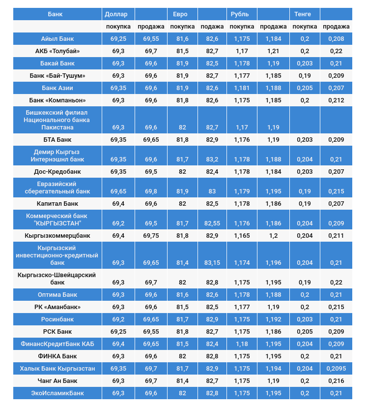 Курс доллара в коммерческих банках Кыргызстана на 20 декабря