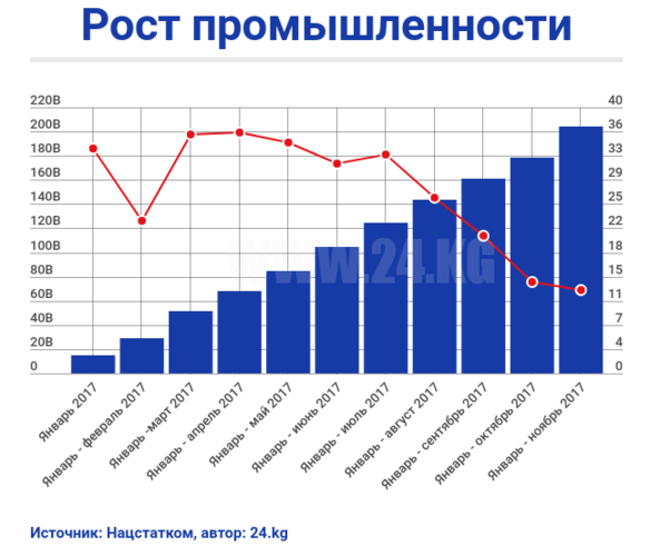 По итогам 11 месяцев 2017 года ВВП Кыргызстана вырос лишь на 4 процента. Экономика начала замедляться. Это повод задуматься. В декабре значительного экономического рывка не будет. Наиболее вероятен сценарий, когда рост ВВП по итогам года составит 3,5-3,8 процента.
