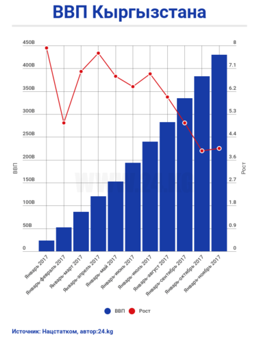 По итогам 2017 года рост ВВП Кыргызстана может составить 3,5-3,8 процента. Но особо хвастать нечем. Экономика по-прежнему зависима от добычи золота, а инвесторы после скандалов идти в Кыргызстан не торопятся.