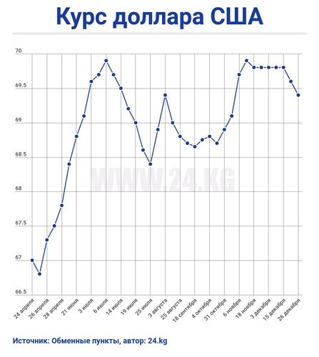 Отметим, несмотря на то что курс американской валюты снижается, Национальный банк не проводит интервенций. НБ КР последний раз выходил на рынок 8 декабря. Всего же в ноябре-декабре он провел 12 интервенций, продав $67,2 миллиона.