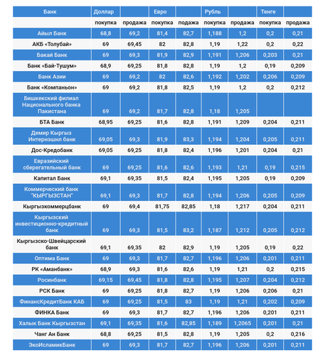 Курс доллара в коммерческих банках Кыргызстана на 28 декабря