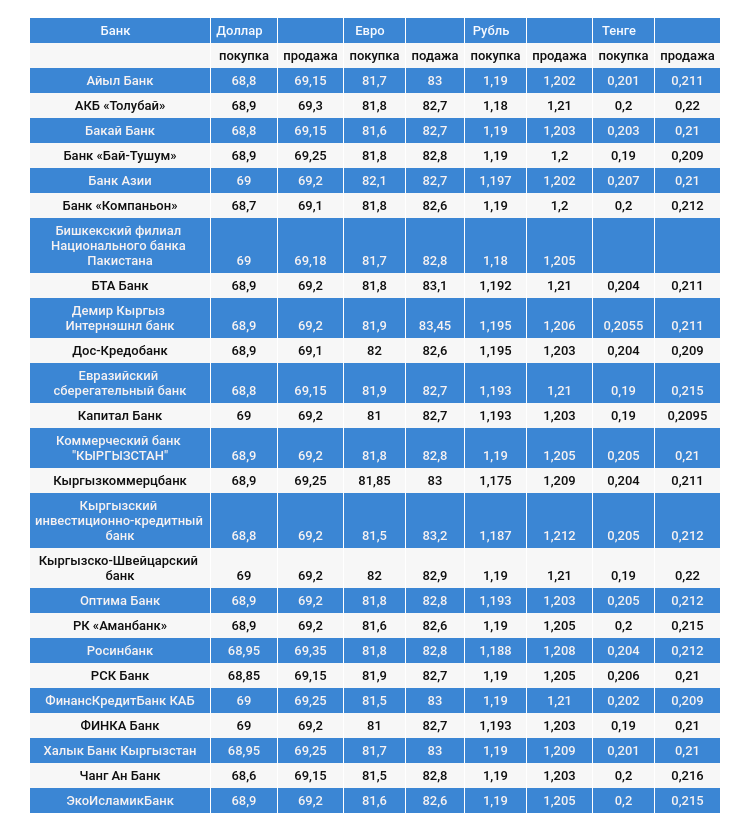 Курс доллара в коммерческих банках Кыргызстана на 29 декабря