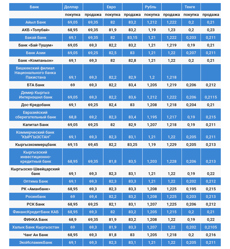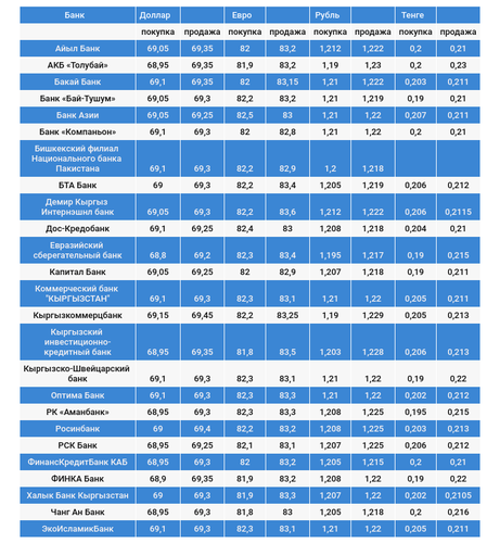 Курс доллара в коммерческих банках Кыргызстана на 10 января