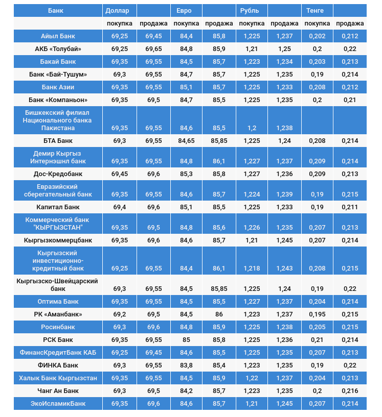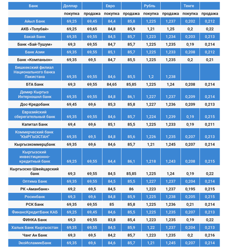 Курс доллара в коммерческих банках Кыргызстана на 17 января