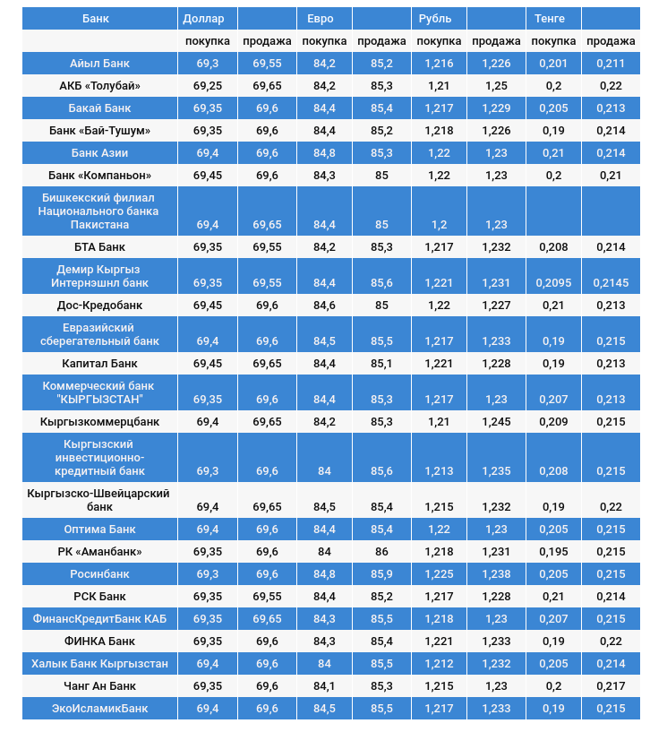 Курс доллара в коммерческих банках Кыргызстана на 18 января