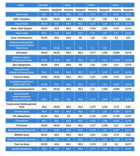 Курс доллара в коммерческих банках Кыргызстана на 19 января