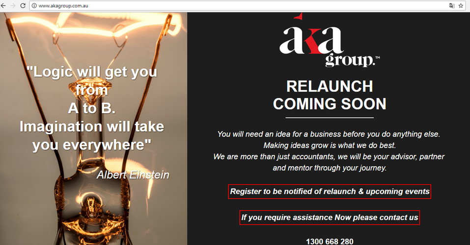 Попытка перейти на официальный сайт компании AKA Group успехом не увенчалась. На главной странице надпись, которая гласит, что «сайт перезапустится совсем скоро».