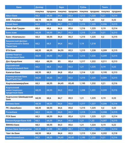 Курс доллара в коммерческих банках Кыргызстана на 1 февраля