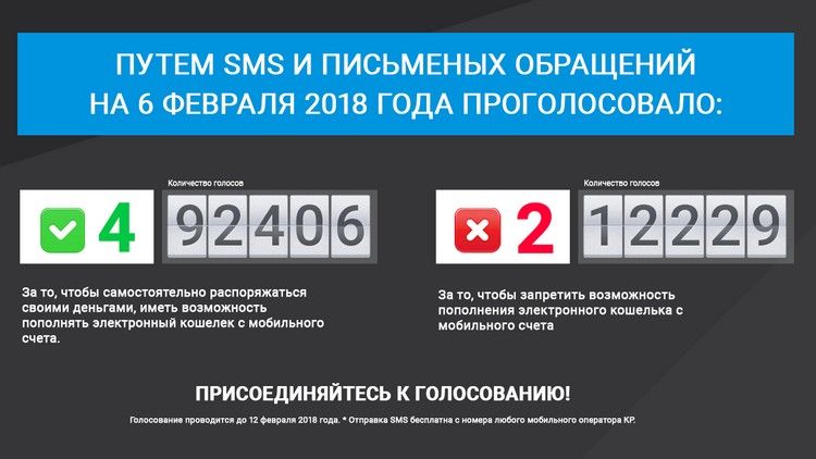 Напомним, 12 января 2018 года Национальным банком КР повторно вынесен на общественное обсуждение проект изменений и дополнений в постановление Правления НБКР «Об утверждении Положения об электронных деньгах» от 30.03.2016 года № 15/6, которым предусматривается полный запрет пополнения электронных кошельков с лицевого счета абонента. Но эта инициатива явно не получила поддержки.