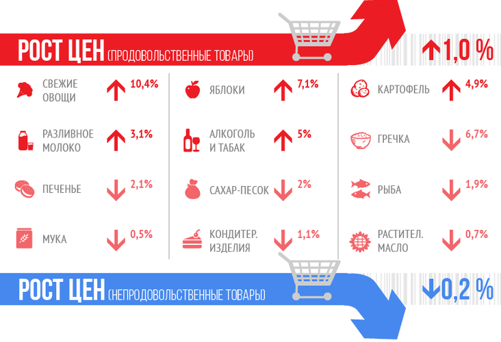 Кроме того, поднялись цены на пищевые продукты и безалкогольные напитки (на 0,4 процента). Незначительное снижение цен (0,1 процента) отмечено лишь на непродовольственные товары.