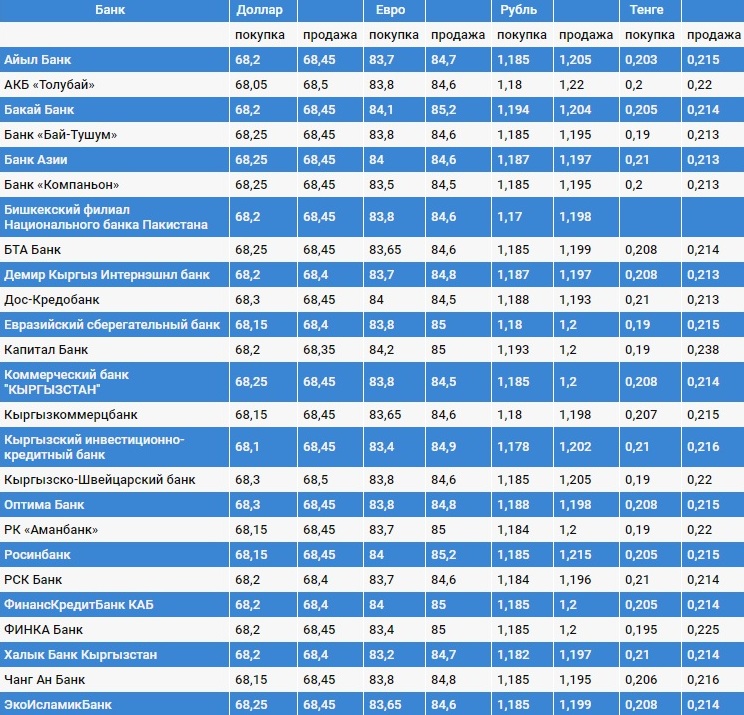 Курс доллара в коммерческих банках Кыргызстана на 16 марта