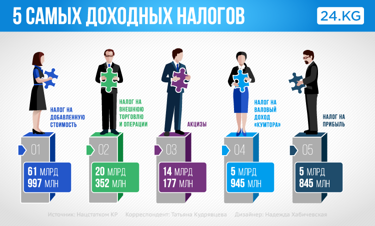 Основная доля в неналоговых доходах — оказание платных государственных услуг (9 миллиардов 341,8 миллиона сомов), дивиденды на госпакеты акций (2,3 миллиарда сомов) и прибыль Национального банка (2 миллиарда сомов).