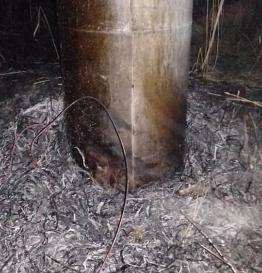Unknown persons reportedly set fire to reeds at night in the area of the high-voltage line. The power line has shut down due to smoke. A pole burned down. A fire team worked at the scene. Panfilovsky and Jaiylsky districts remained without electricity. Currently, the power supply is restored.