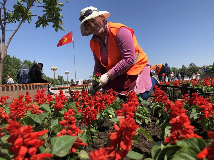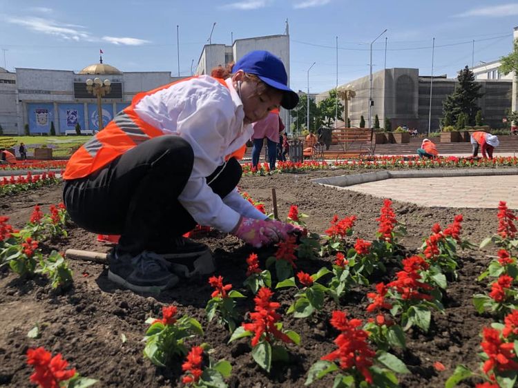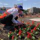 Planting of flowers continues on the central square. Earlier, Tazalyk employees have decorated it with a flower clock. Over 95,000 flowers will be totally planted.