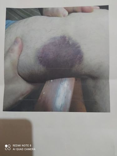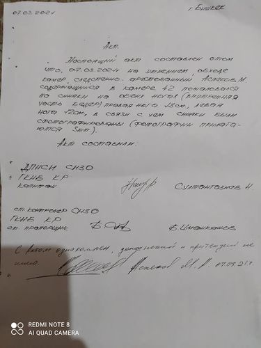 The act, posted on the social media, indicates that the person under investigation Melis Aspekov, held in cell No. 42, complained of bruises on both legs. Hematomas were recorded.