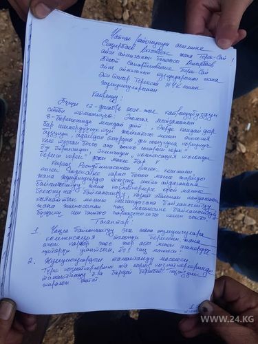 According to them, the workers sent a written appeal to the head of Chatkal district Altynbek Senirbaev and the head of the rural administration Bolot Ashyrbaev.