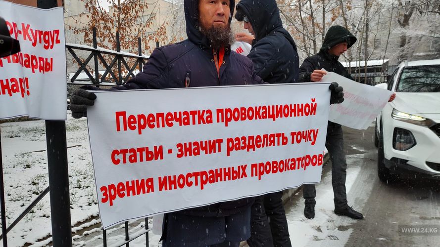 Another rally is held near the office of Kaktus.media news agency in Bishkek.