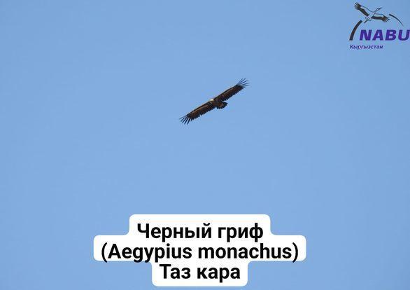 Employees of NABU-Kyrgyzstan recorded a rare and endangered bird species — black vulture (Aegypius monachus), included in the Endangered Species List of the Kyrgyz Republic. The organization reported on Facebook.