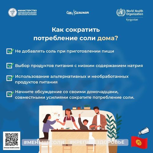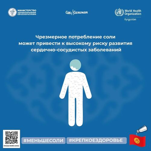 The campaign aims to raise awareness of the risks of excess salt consumption and encourage healthier lifestyles. It is being carried out in cooperation with the Department of State Sanitary and Epidemiological Surveillance and the WHO Representative Office in Kyrgyzstan.