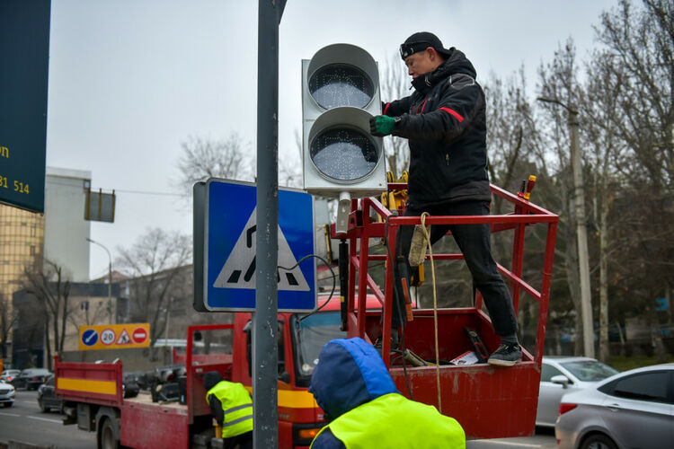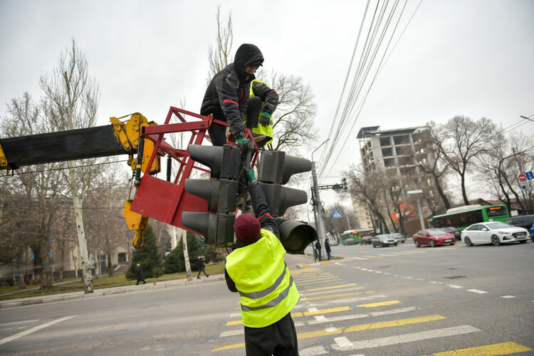 Mayor of Bishkek Aibek Dzhunushaliev inspected the modernization of traffic light facilities at the intersection of Baytik Baatyr and Mederov streets and instructed to complete the work on time.