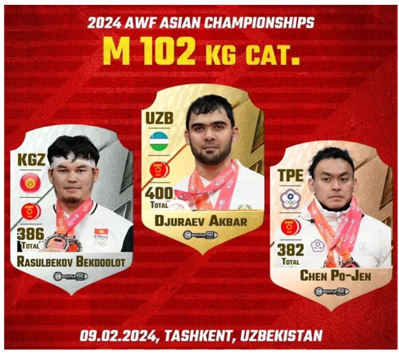 In the weight category up to 102 kilograms, the Kyrgyzstani showed a result of 386 kilograms.