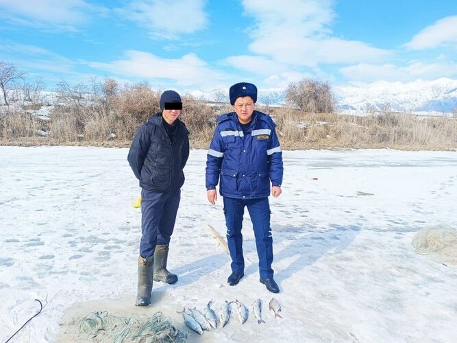According to it, on the night of February 15, a 45-year-old resident of Chon-Sary-Oi village, Issyk-Kul district, was detained for illegally fishing on the lake.