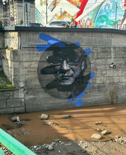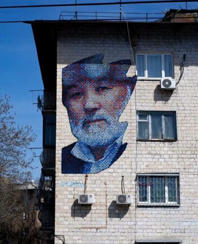- Ala-Archa River near Asia Mall shopping center: portrait of Ulan Dzhaparov, a pioneer and driver of modern art in Kyrgyzstan;