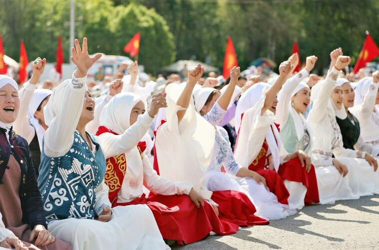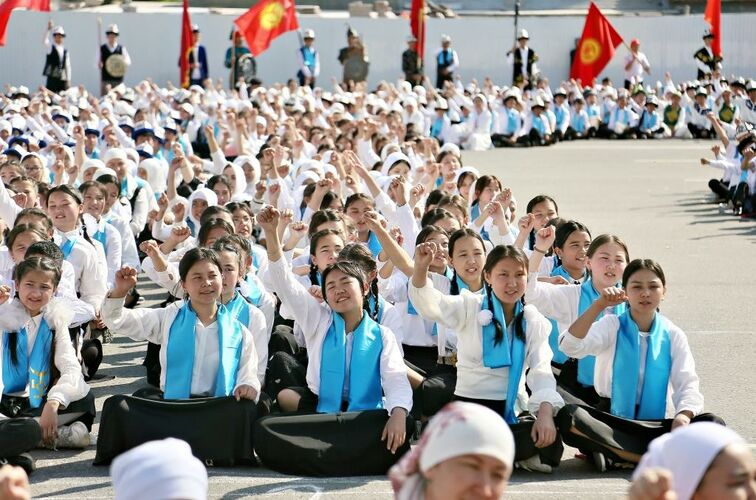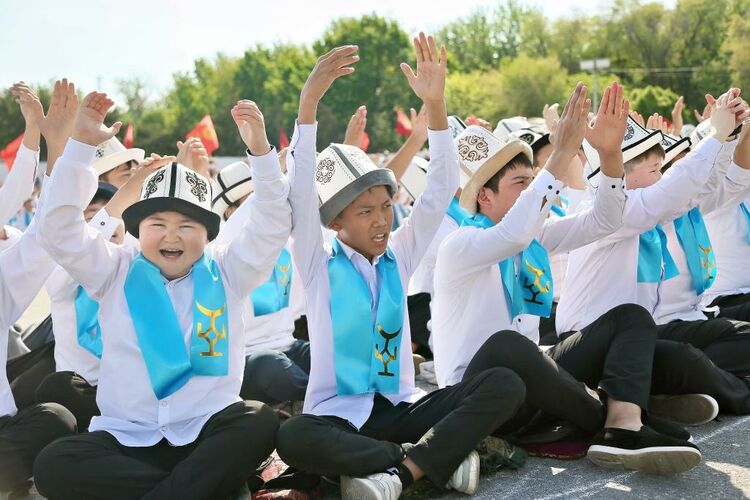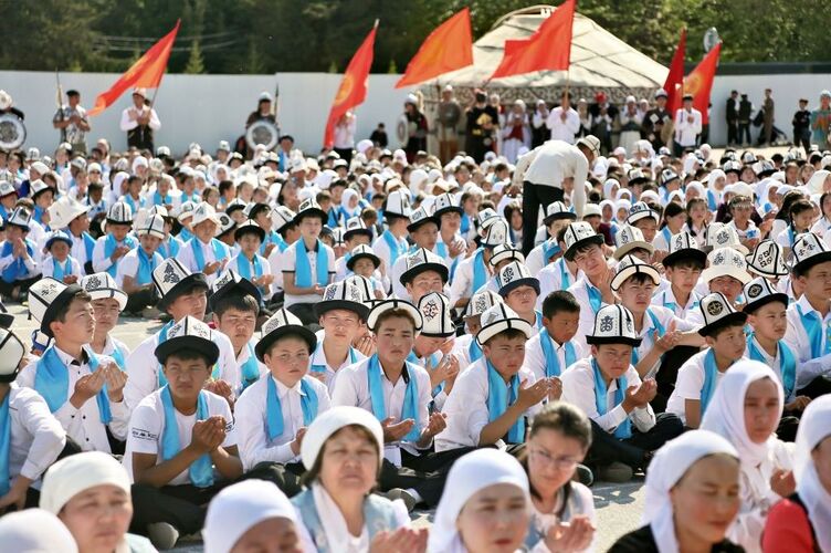 At least 3,000 schoolchildren recited Manas epic on the central square of Osh city. The press service of the City Hall reported.