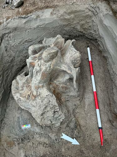 The previously found fragments of the tusk and jaw were cleaned and initially preserved on site. All finds are packed and prepared for transportation. After conservation, they will be transferred to the museum.