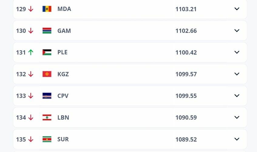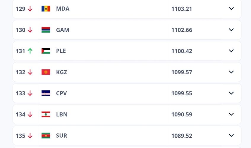 The men’s football team of the Kyrgyz Republic takes the 100th place in the FIFA ranking.