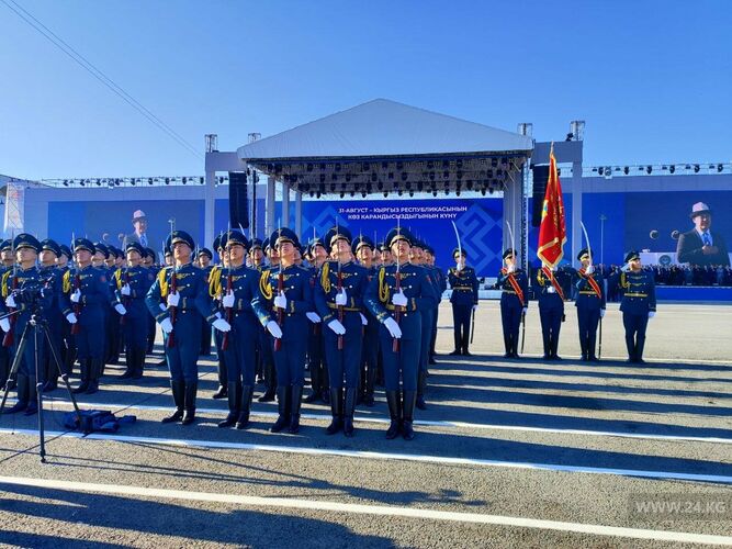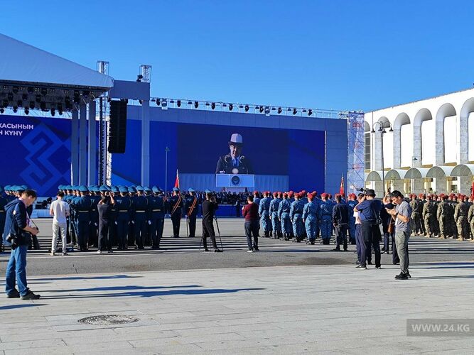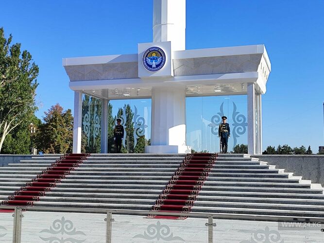 A ceremony of raising the national flag on a new flagpole took place on the central square of Bishkek today, August 31. 24-kg.com news agency correspondent reported.