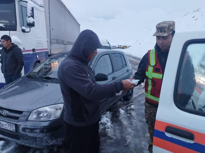 A large traffic jam has formed on the section from 129th to 132nd kilometer of Bishkek — Osh highway at Too-Ashuu mountain pass. According to preliminary data, about a thousand cars are parked along the road. The press service of the Ministry of Emergency Situations of Kyrgyzstan reported.