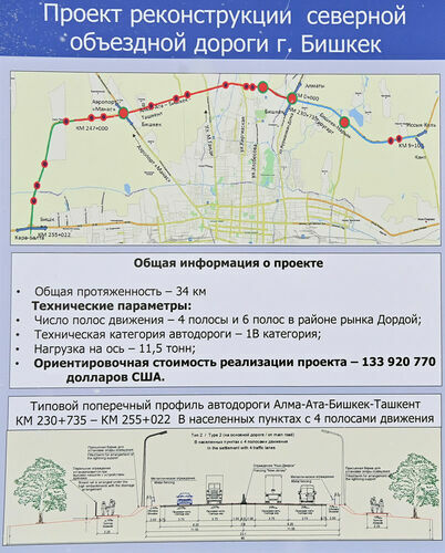 According to the document, reconstruction is planned on the section from the 230.7th to the 255th kilometer, as well as on the section from the 0th to the 9.1st kilometer of Bishkek-Balykchy-Naryn-Torugart road.Earlier, the Vice-Mayor of the city, Zhamalbek Yrsaliev, reported that the bypass road in the capital will be made six-lane. According to him, the reconstruction project is already ready, the work is being carried out jointly with the Ministry of Transport and Communications. He added that the coal and timber sales points previously located along the road have been removed, the territory has been cleared.