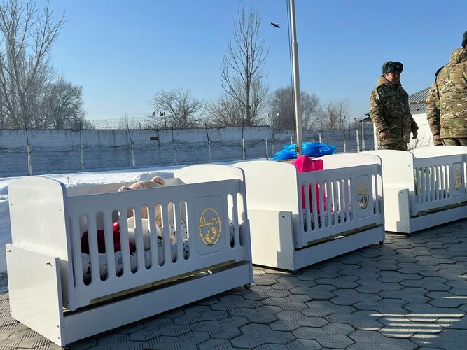 Employees of the central office of the State Penitentiary Service of Kyrgyzstan donated playpens and toys to convicts with children serving their sentences in correctional institution No. 2 (women’s prison colony) in Stepnoye village, Alamedin district. The press service of the State Penitentiary Service reported.