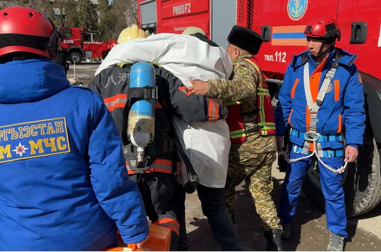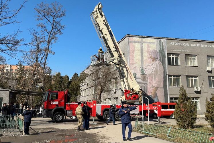 Training exercises simulating an emergency — a fire in the urology unit — were held at the National Hospital in Bishkek. The press center of the Ministry of Health reported.