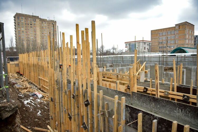 The first rotary parking system for ten cars is being constructed on Bezymyannaya Street, near Orto-Sai market in Bishkek. The press service of the City Hall reported.