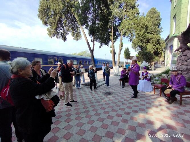 «More than 60 foreign tourists from Western Europe and North America are traveling on the train. They will explore the cultural and historical landmarks of the country. The national carrier NC Kyrgyz Temir Zholu ensured the train’s timely arrival and organized a ceremonial welcome for the guests at Bishkek-2 railway station. This tourist journey marks an important step in boosting Kyrgyzstan’s tourism potential and strengthening regional cooperation,» the statement says.