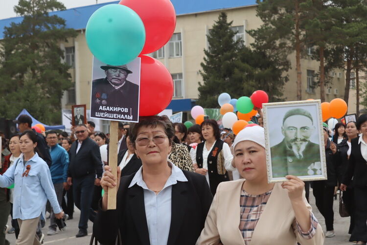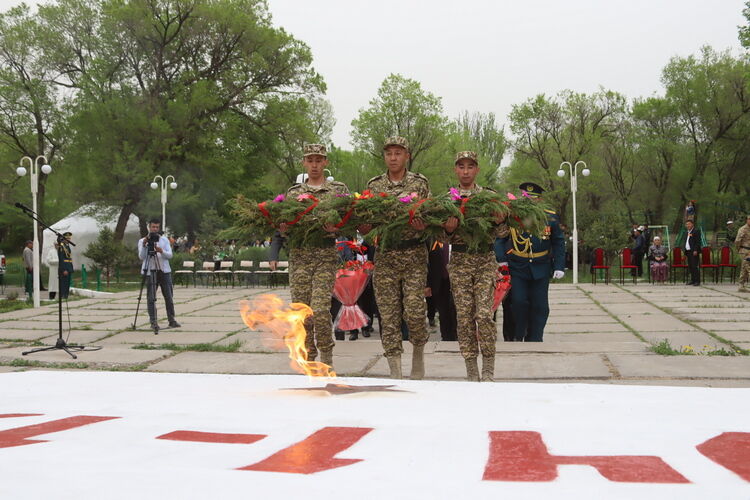 The commemorative ceremony began with a wreath-laying at the memorial in Tien Shan Park, followed by a moment of silence and recitation of the Quran in memory of the fallen. Then, the Immortal Regiment march was held.