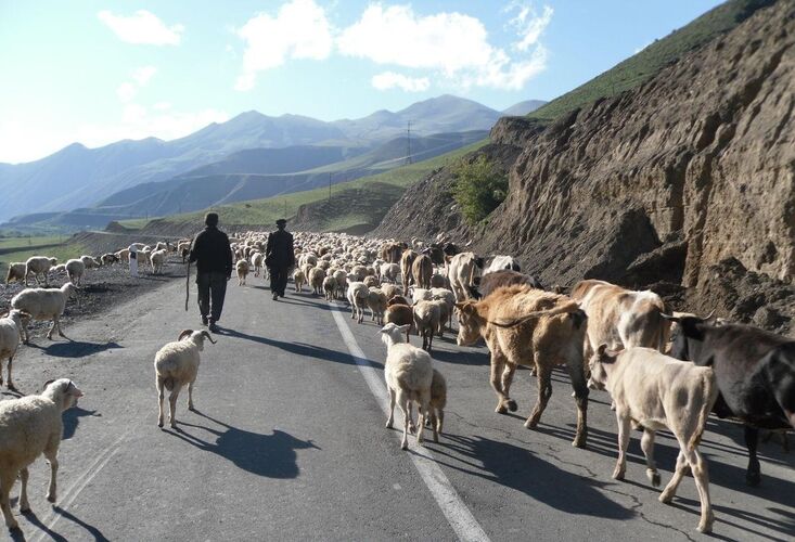 With the approach of summer, cattle are being driven to Suusamyr Valley. In order to avoid traffic jams and ensure safety, the Kolbaev tunnel on the 129th kilometer of Bishkek-Osh highway will be periodically closed in both directions for 15-20 minutes to allow cattle to pass.