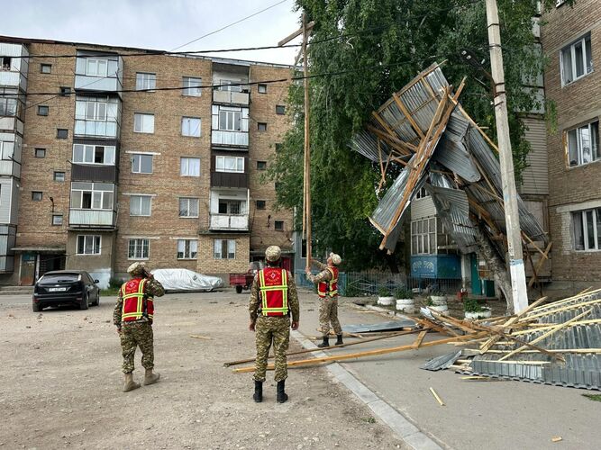 A strong wind tore roofs off multi-story buildings in the city of Talas. The press service of the Ministry of Emergency Situations of Kyrgyzstan reported.