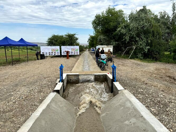 The 8.45-kilometer-long Saparbayev-1 canal will provide 2,333 hectares of agricultural land with water. Through it, water flows to the lands serviced by Kok-Zhar, Abshyr-Tany and Toolos-Nookat water user associations.