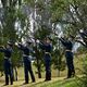 The servicemen removed the canvas from the monument, after which the National Anthem of the Kyrgyz Republic was performed. After laying flowers at the memorial, the participants honored the memory of the dead with a minute of silence. Then a three-volley rifle salute was fired.