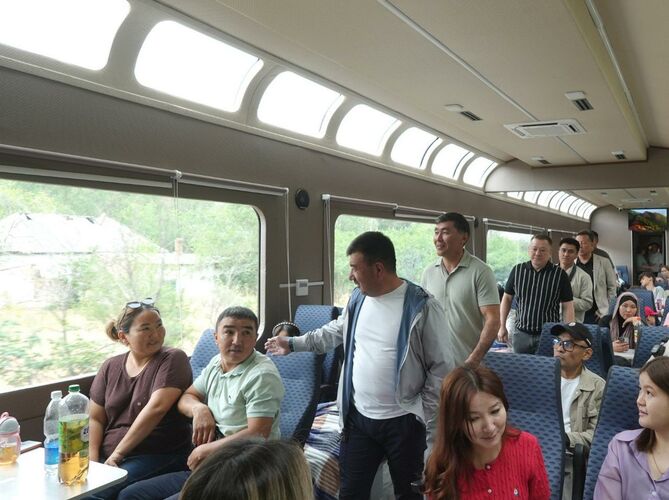 Deputies Baktybek Sydykov, Talant Mamytov, Mederbek Sakkaraev, and Baktybek Choybekov, led by Committee Chairman Muradil Sydykov, traveled with passengers in a refurbished car along Bishkek-2 — Balykchy railway route. During the trip, they spoke with passengers and inspected the condition of the train cars.