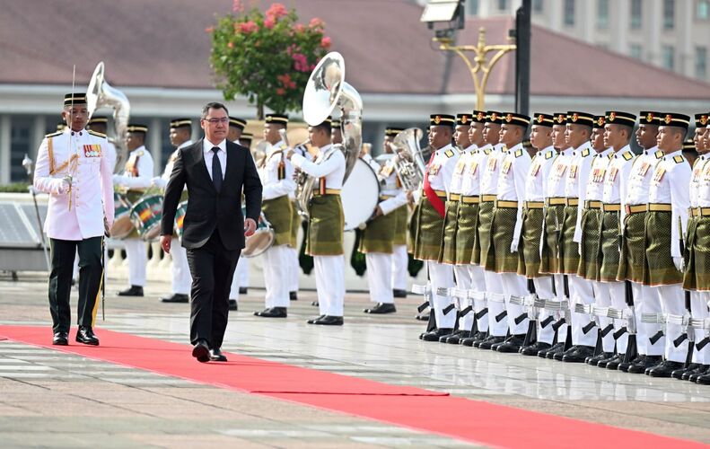 During the ceremony, the members of delegations of the two countries were formally introduced. The commander of the honor guard company delivered a welcome report, and President Japarov reviewed the guard of honor. He also left a note in the Book of Honorary Guests of the office of the Prime Minister of Malaysia and toured the Prime Minister’s personal office.