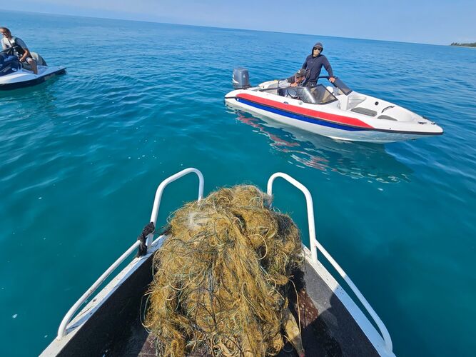 Regular anti-poaching measures continue on Issyk-Kul Lake. During the raid, 1,150 meters of synthetic nets were pulled out of the water. The press service of the Department of Internal Affairs of Issyk-Kul region reported.