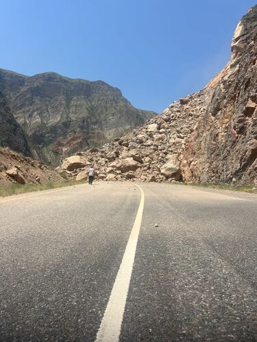 A large mass of rocks fell from a mountain slope on the alternative North-South road. The press service of the Ministry of Transport and Communications of Kyrgyzstan reported.