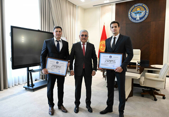 Denis Petrashov was presented with a certificate for 500,000 soms. The head of the Cabinet added that the state will continue to support athletes, including through the construction of schools with swimming pools, and Issyk-Kul is planned to be developed as a center for sports tourism and water sports.