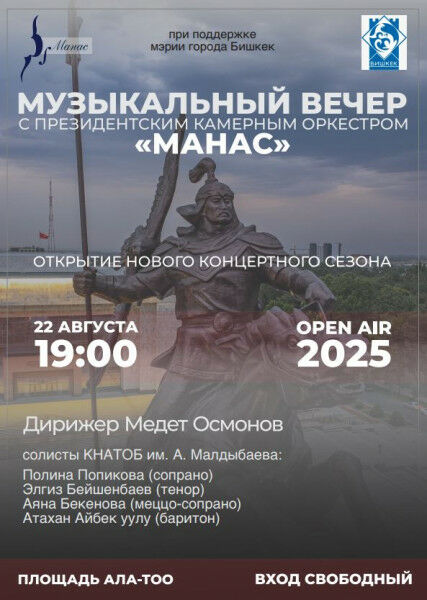 The Presidential Chamber Orchestra Manas with the support of the Bishkek City Hall opens a new concert season on August 22. The press service of the municipality reported.