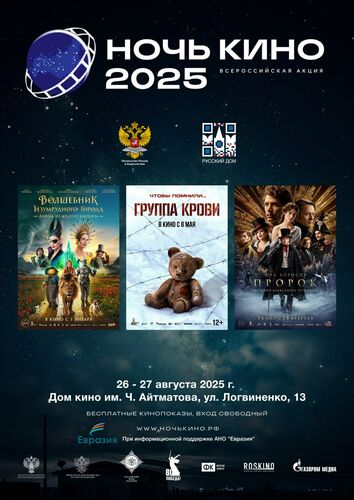 In addition, Bishkek will host the exhibition «Tarkovskys. Father and Son», dedicated to the life and work of poet Arseny Tarkovsky and his son, renowned film director Andrei Tarkovsky.Cinema Night is timed to coincide with Russian Cinema Day, celebrated annually on August 27. This year marks the 10th anniversary of the event.