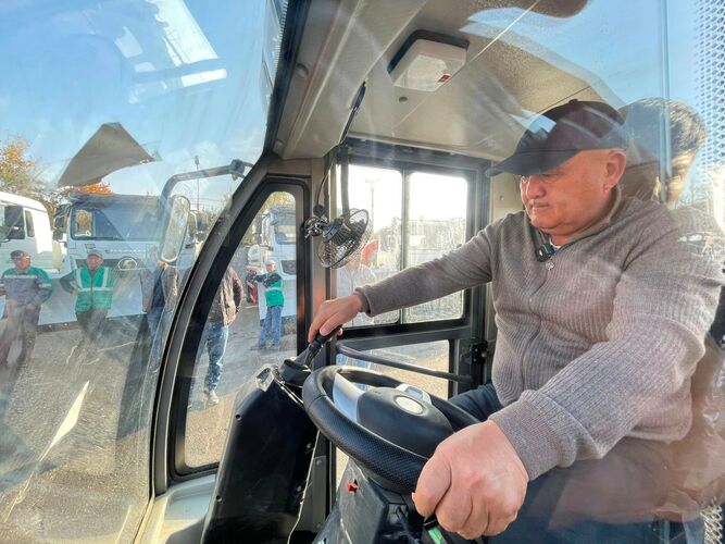 For the first time, new specialized snow-removal and street-cleaning machines have been purchased for municipal services at the initiative of the mayor. Toktorbaev personally tested the new equipment.